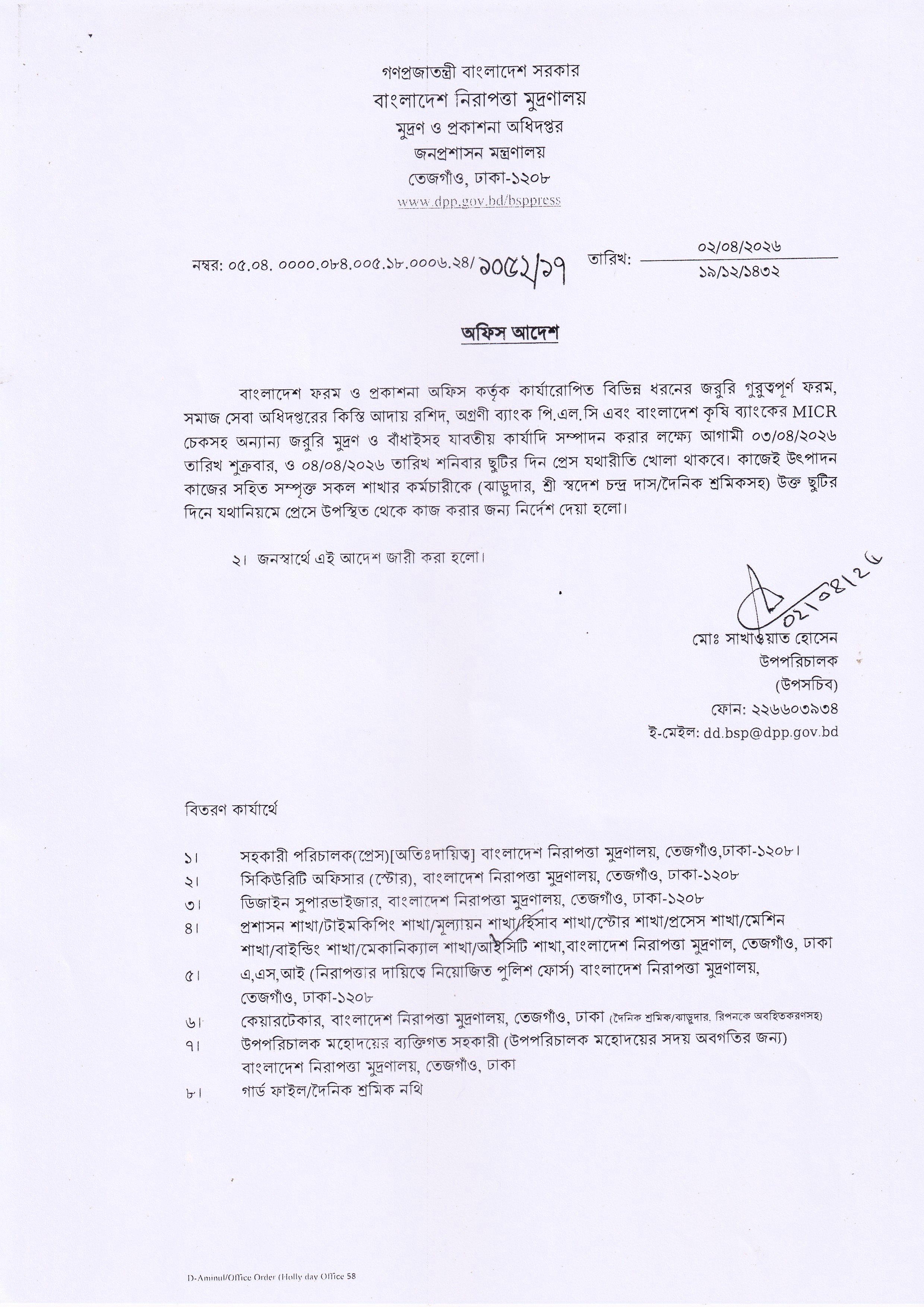 কন্টেন্ট: নোটিশ প্রকাশের তারিখ: ০২-০৪-২০২৬ আর্কাইভ তারিখ: ০১-০৪-২০২৭