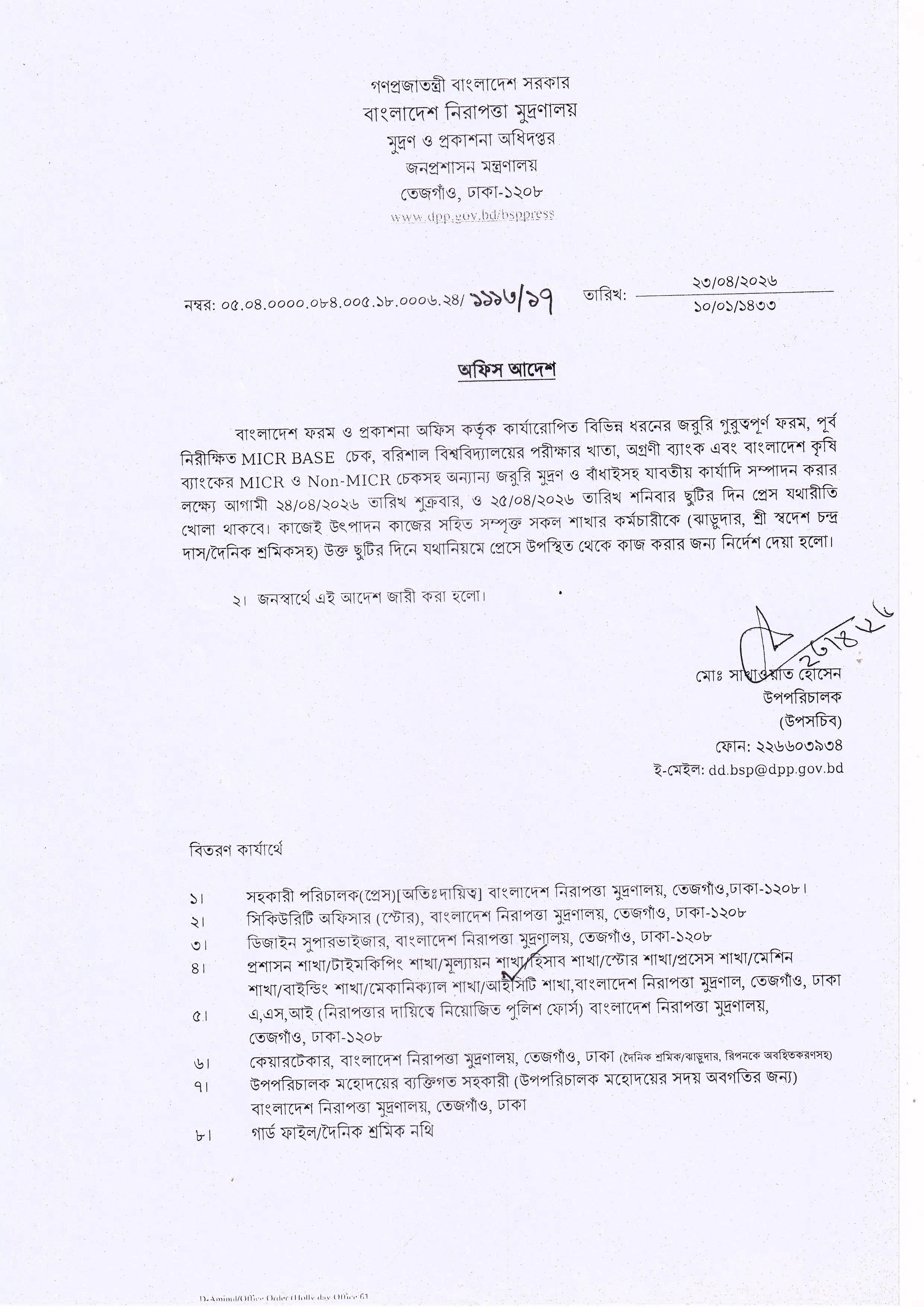 কন্টেন্ট: নোটিশ প্রকাশের তারিখ: ২৪-০৪-২০২৬ আর্কাইভ তারিখ: ২৪-০৪-২০২৭
